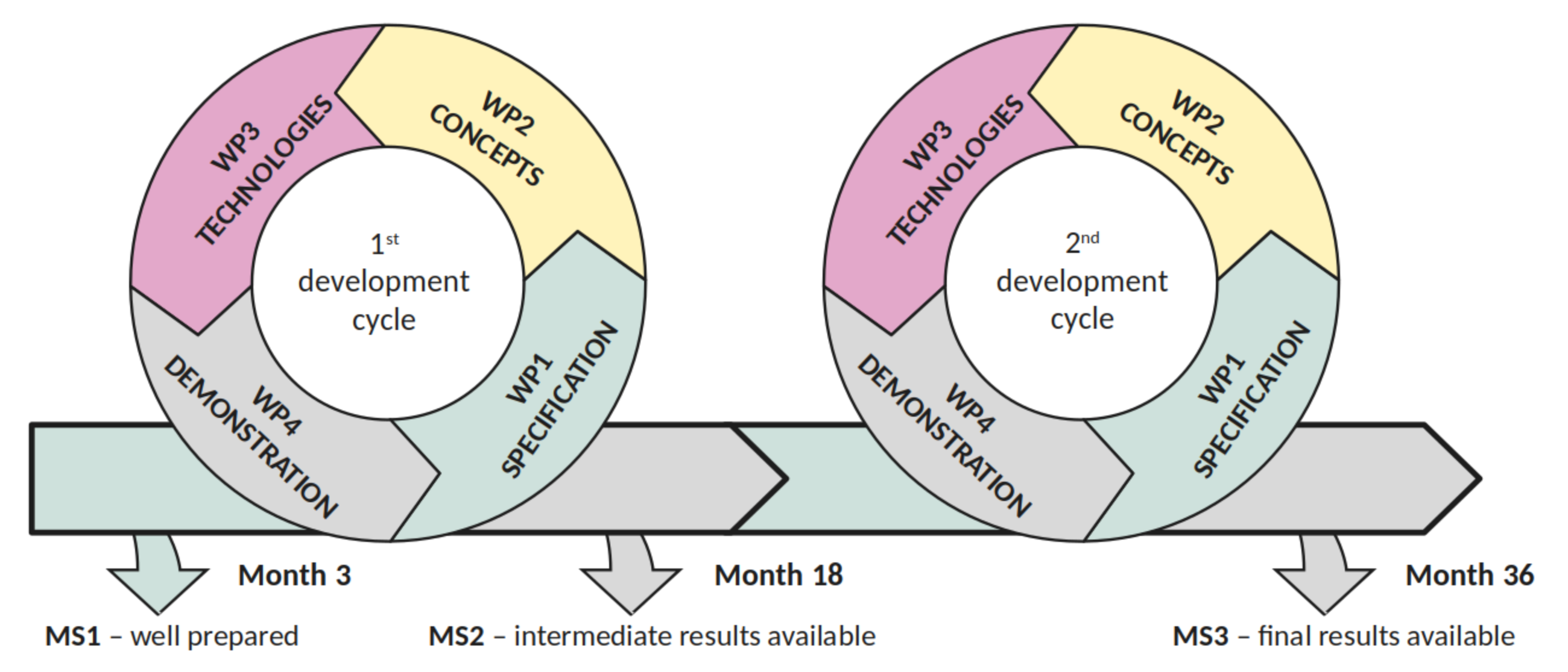 Iterative development – 2 main cycles each consisting of 4 stages